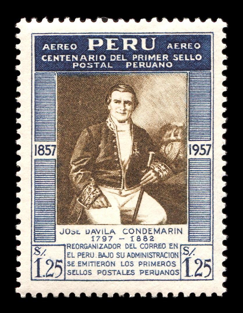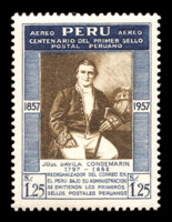 1957. Перу. Авиапочта - 100-летие первой перуанской почтовой марки.