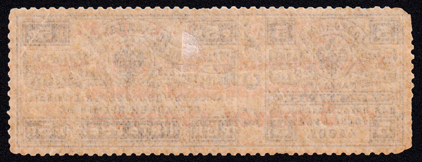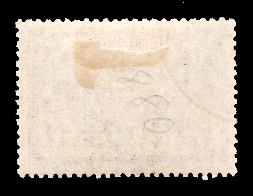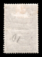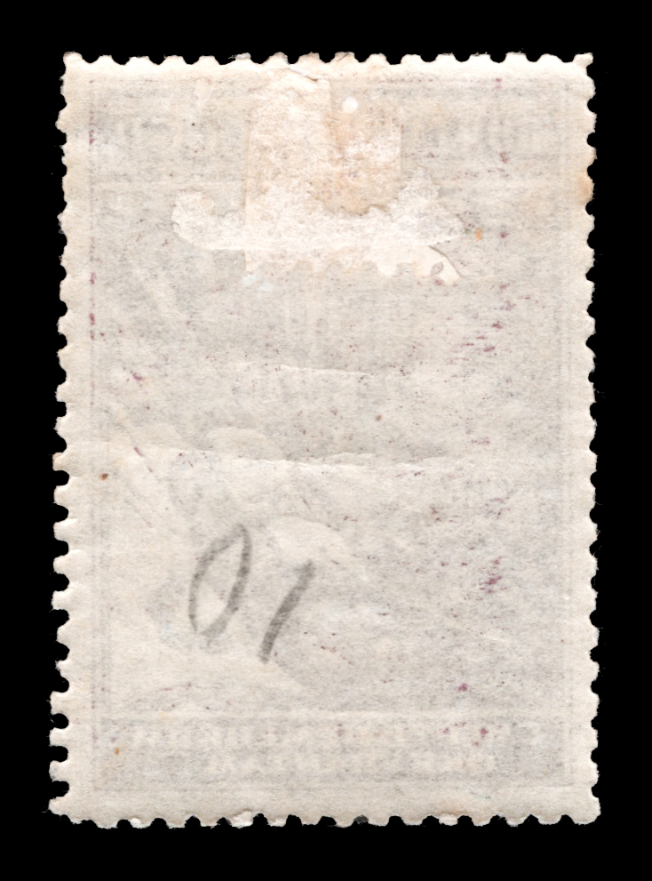 Кат. № 20 (3.1.1). Печать: типографская. Перфорация гребенчатая 12. Гильошированный фон. Размер рисунка 21,3 х 40,3 мм.
