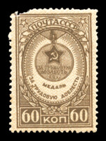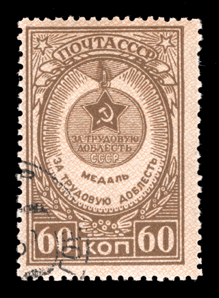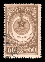 Кат. № 966. C сетчатым фоном. Тираж – 5000 000. Цвет: коричневая. Печать: типография. Перфорация гребенчатая 12 1/4 : 12.