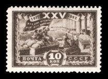 Кат. № 715. Тираж – 2000 000. Цвет: карминовая. Печать: глубокая. Перфорация линейная 12 1/4.