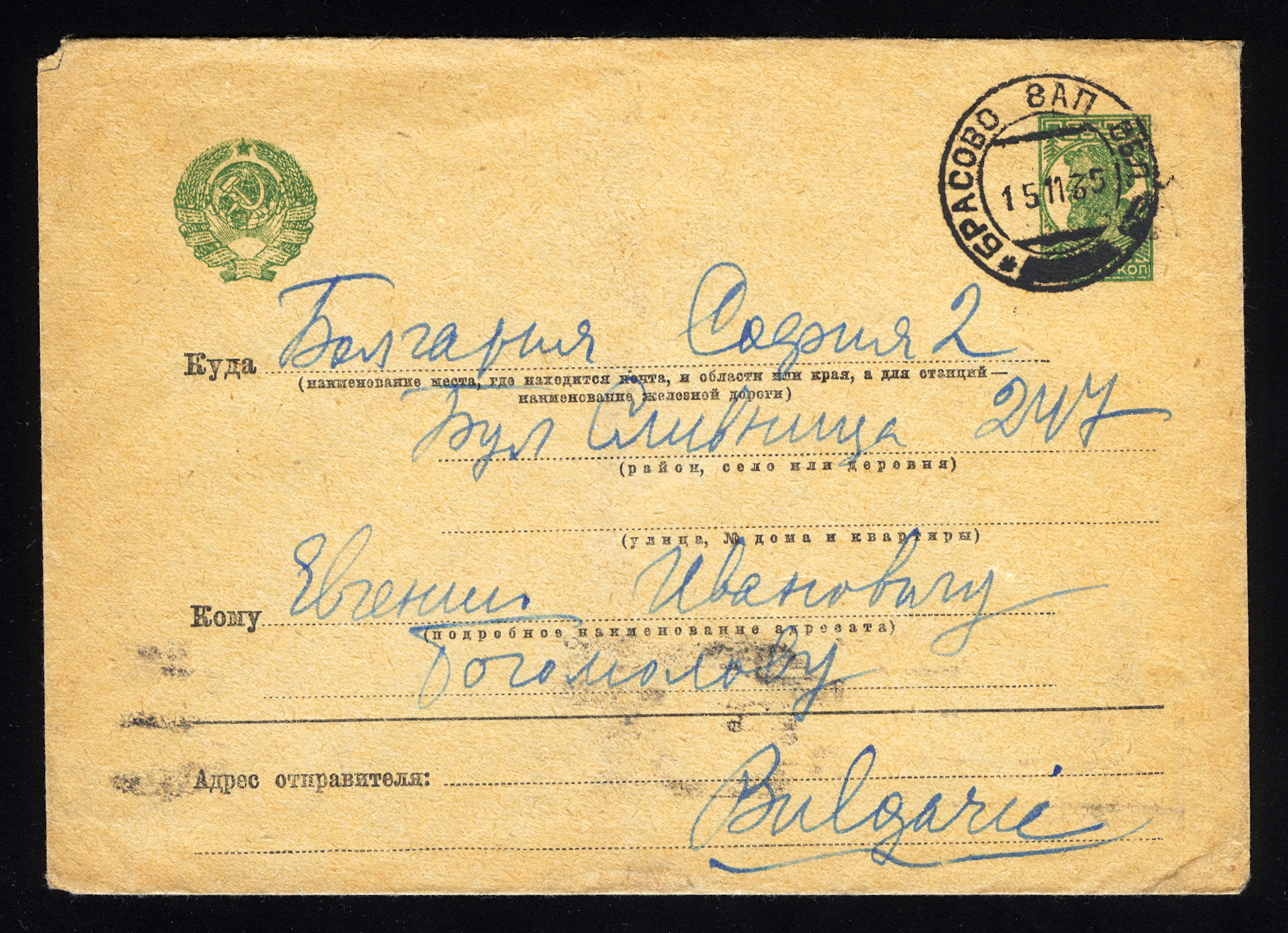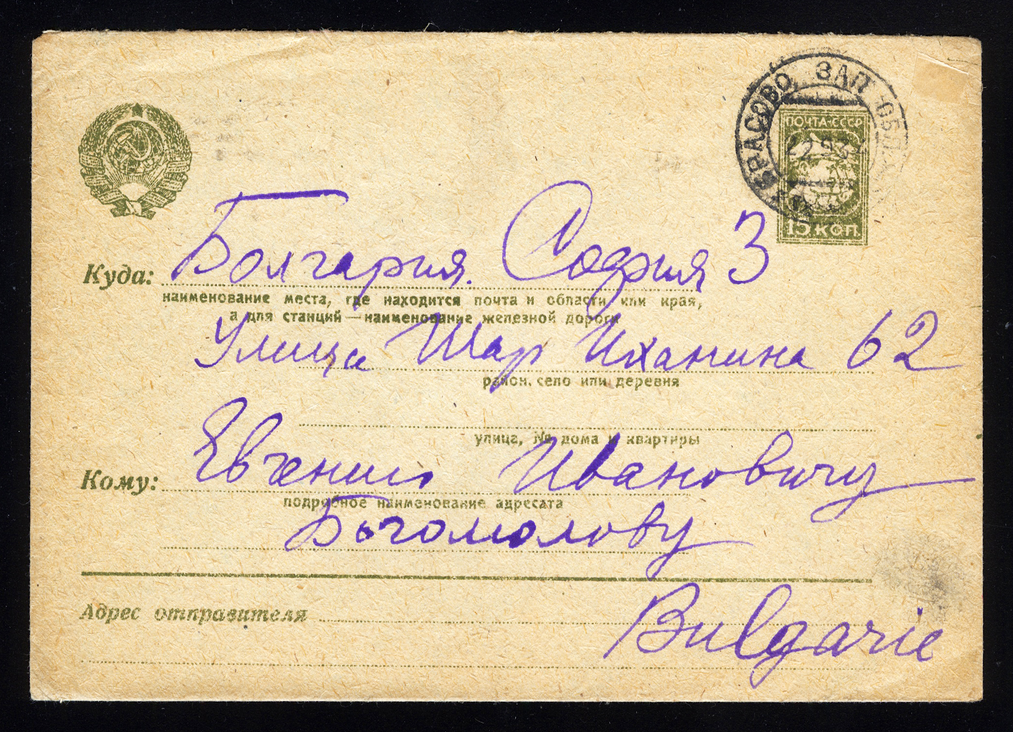 1953. Болгария. Почтовая карточка. Х.Р. Ботйов.