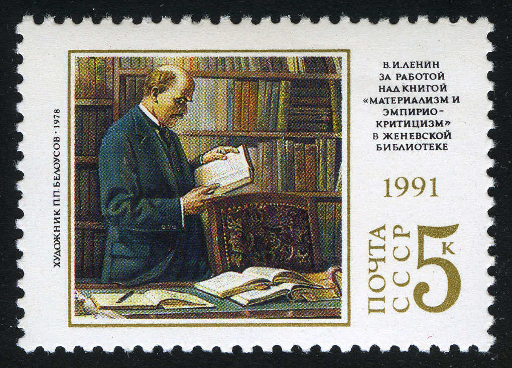 П. Белоусов. "В. И. Ленин за работой над книгой "Материализм и эмпириокритицизм" в женевской библиотеке".
