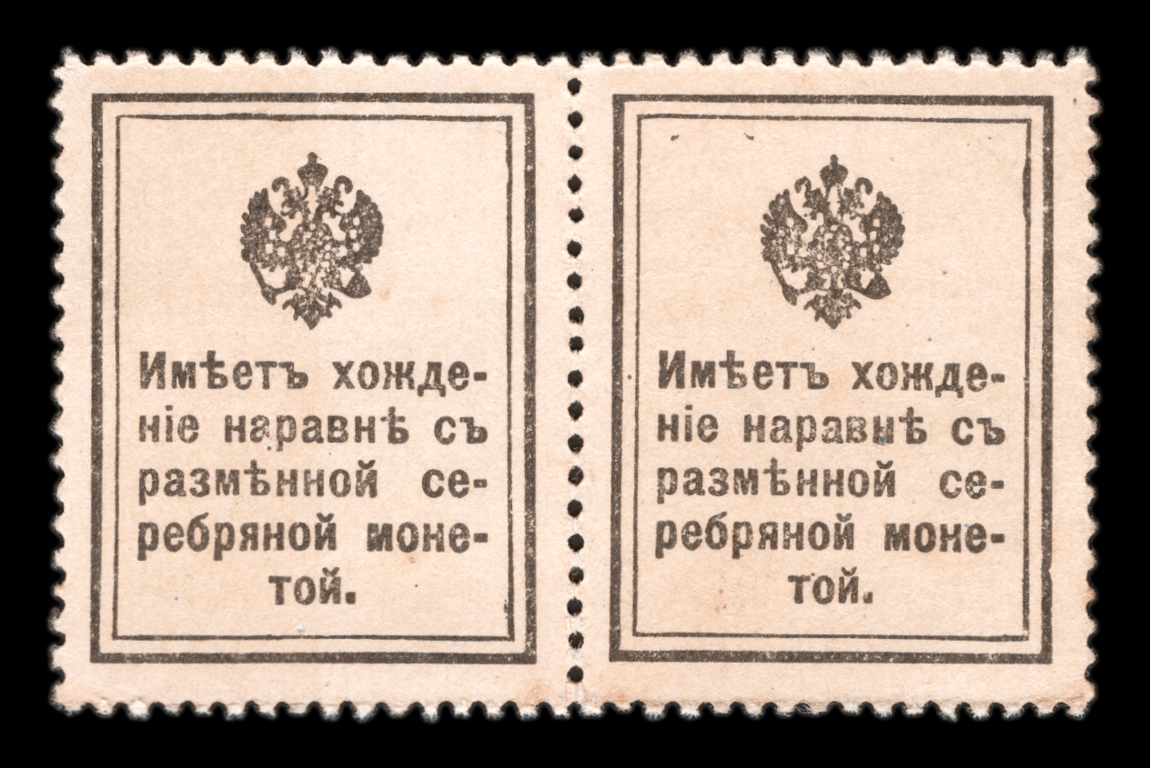 Кат. № C3. Пятно у подбородка. Цвет: красно-коричневая. Печать: типографская. Бумага: тонкий картон. На оборотной стороне герб России и текст.