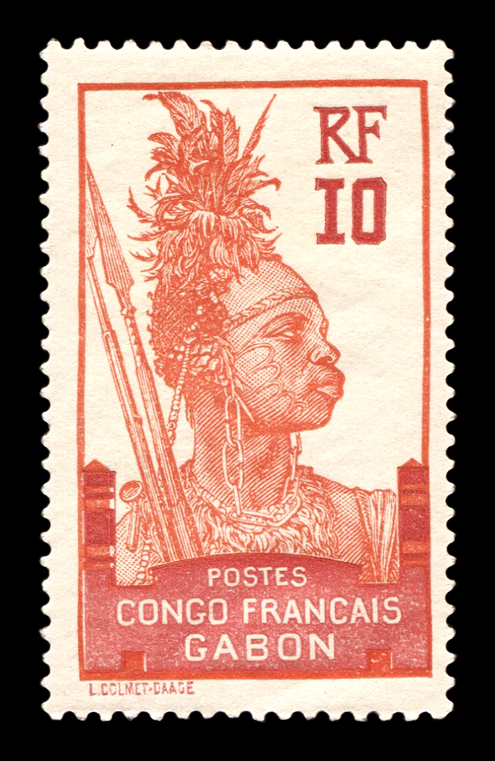 1910. Габон. Воин - "CONGO FRANCAIS GABON".