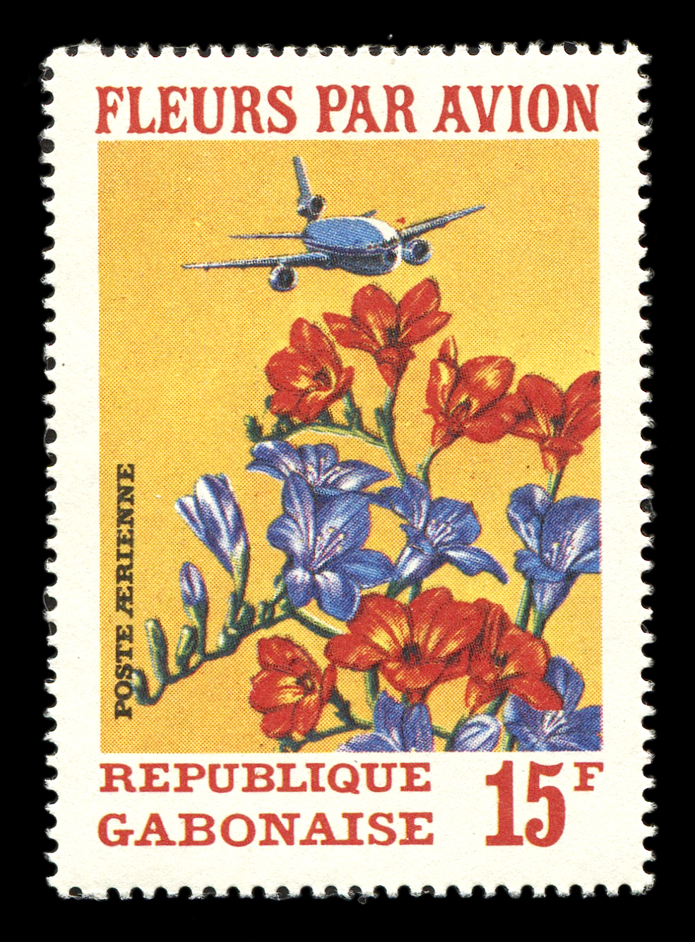 1971. Габон. Авиапочта. Цветы и самолёты.