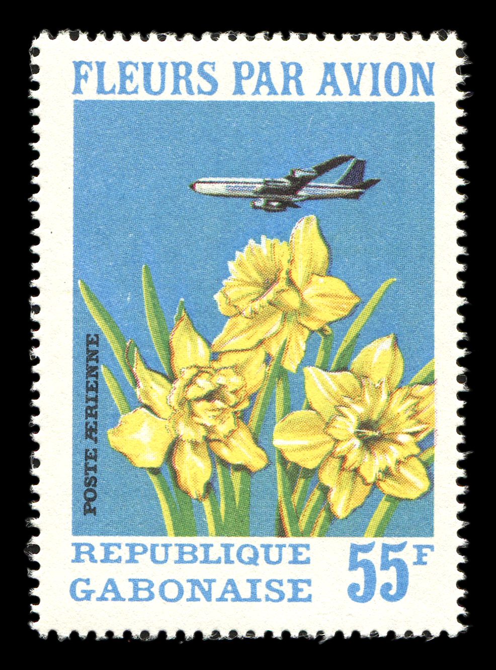 1971. Габон. Авиапочта. Цветы и самолёты.
