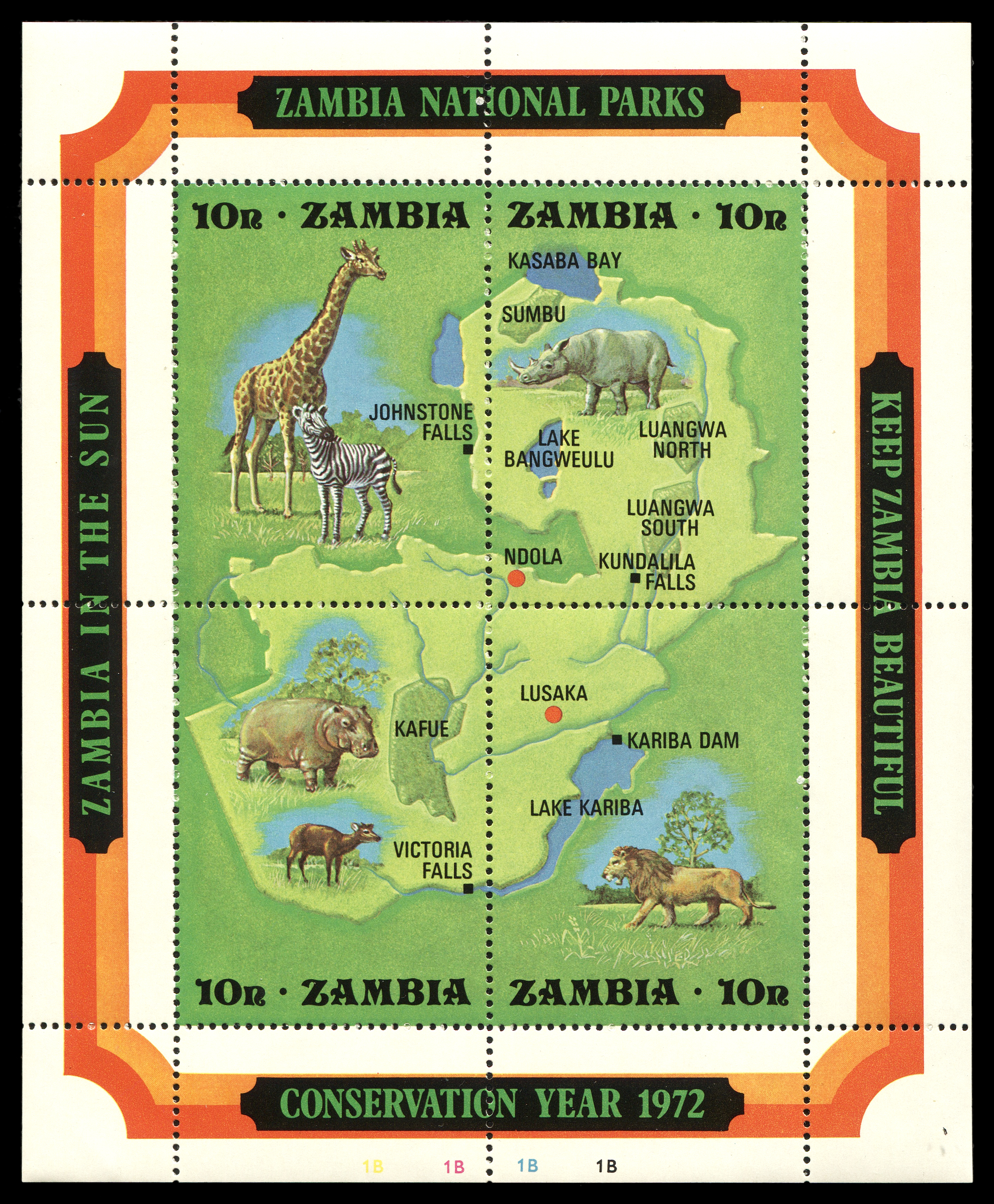 1972. Замбия. Год охраны природы — Национальные парки.