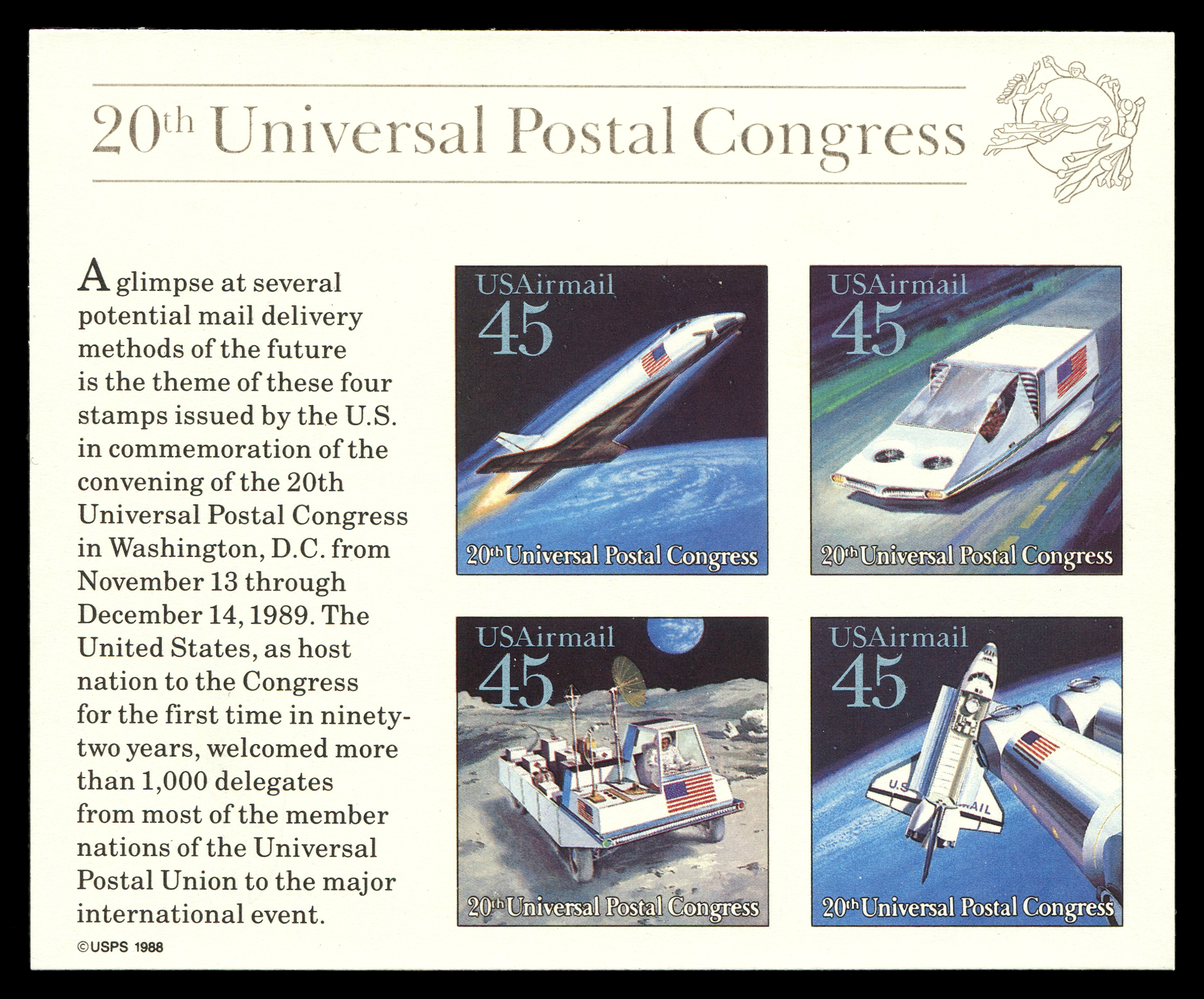 1989. США. XX Конгресс Всемирного почтового союза и Всемирная филателистическая выставка '89.