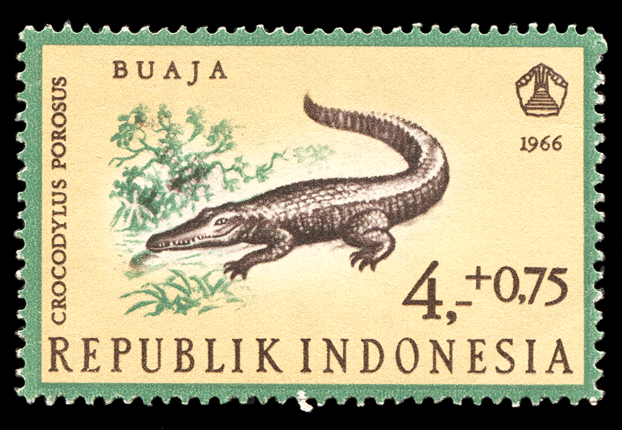 1966. Индонезия. Рептилии - Гребнистый крокодил.