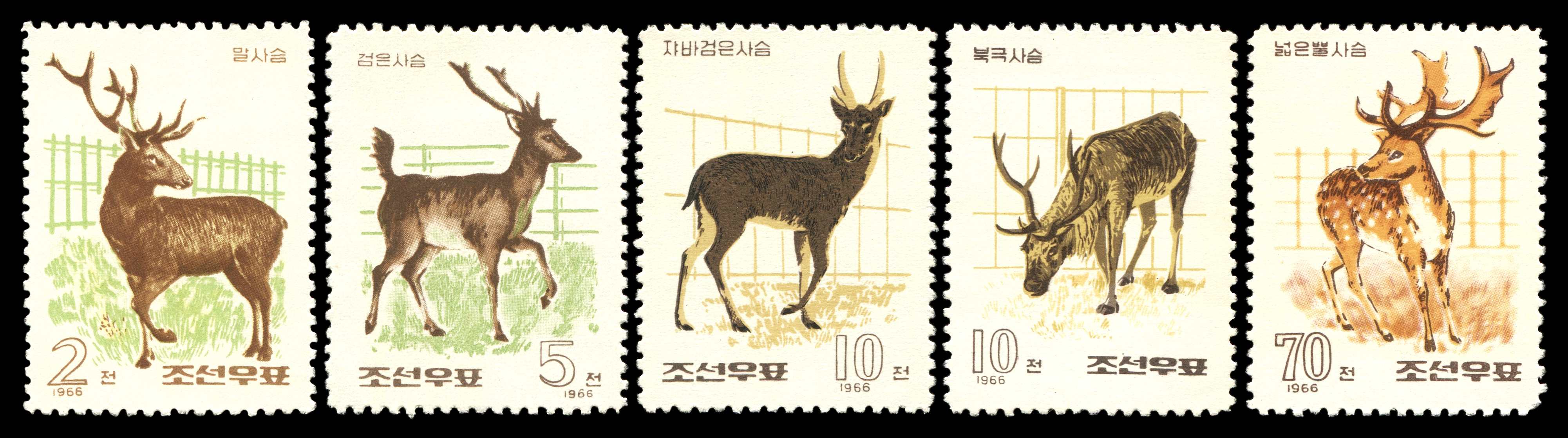 1966. Северная Корея (КНДР). Олени в Пхеньянском зоологическом саду.