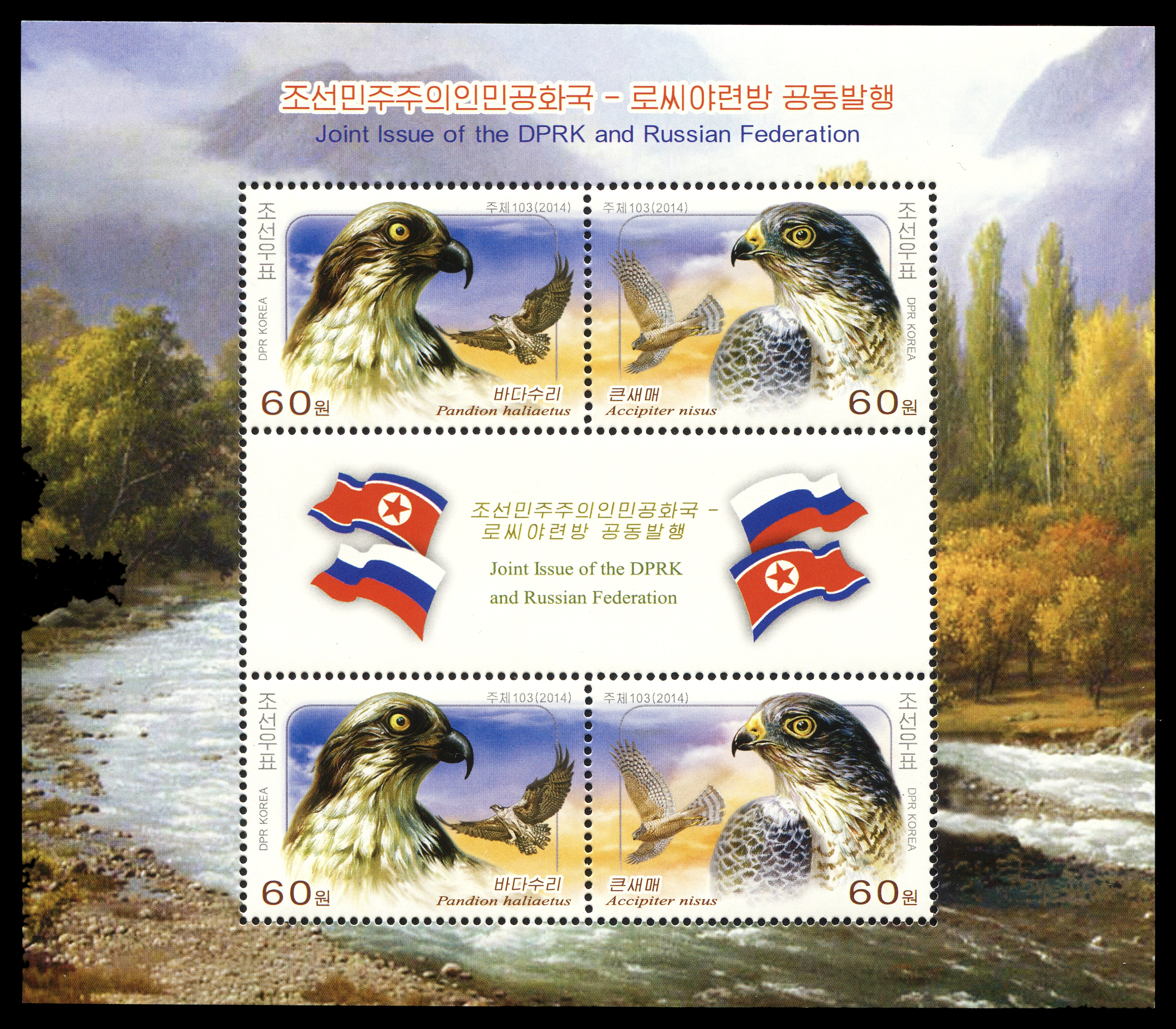 2013. КНДР-Россия. Совместный выпуск — Птицы.