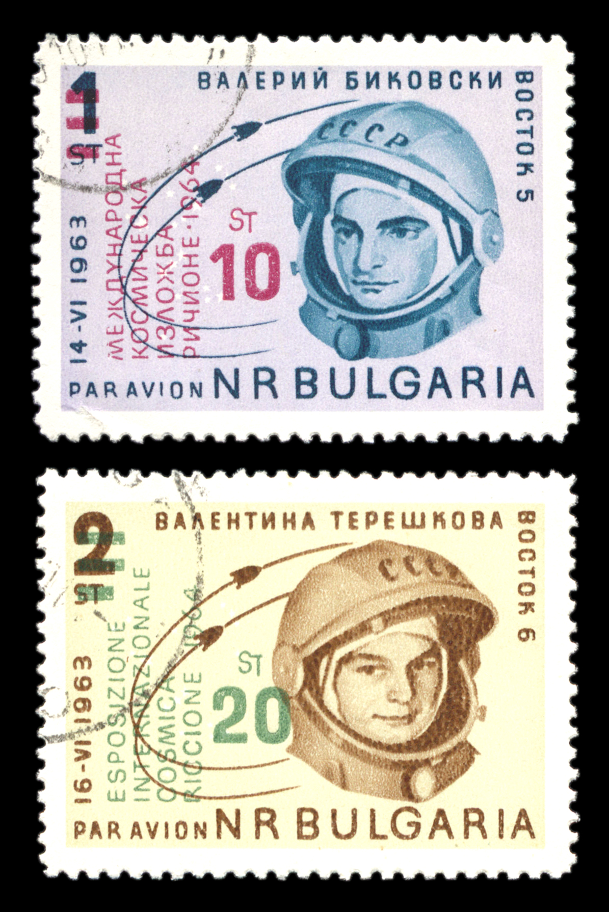 1964. Болгария. Авиапочта — Совместный полет советских космических кораблей "Восток-5" и "Восток-6". Надпечатка.