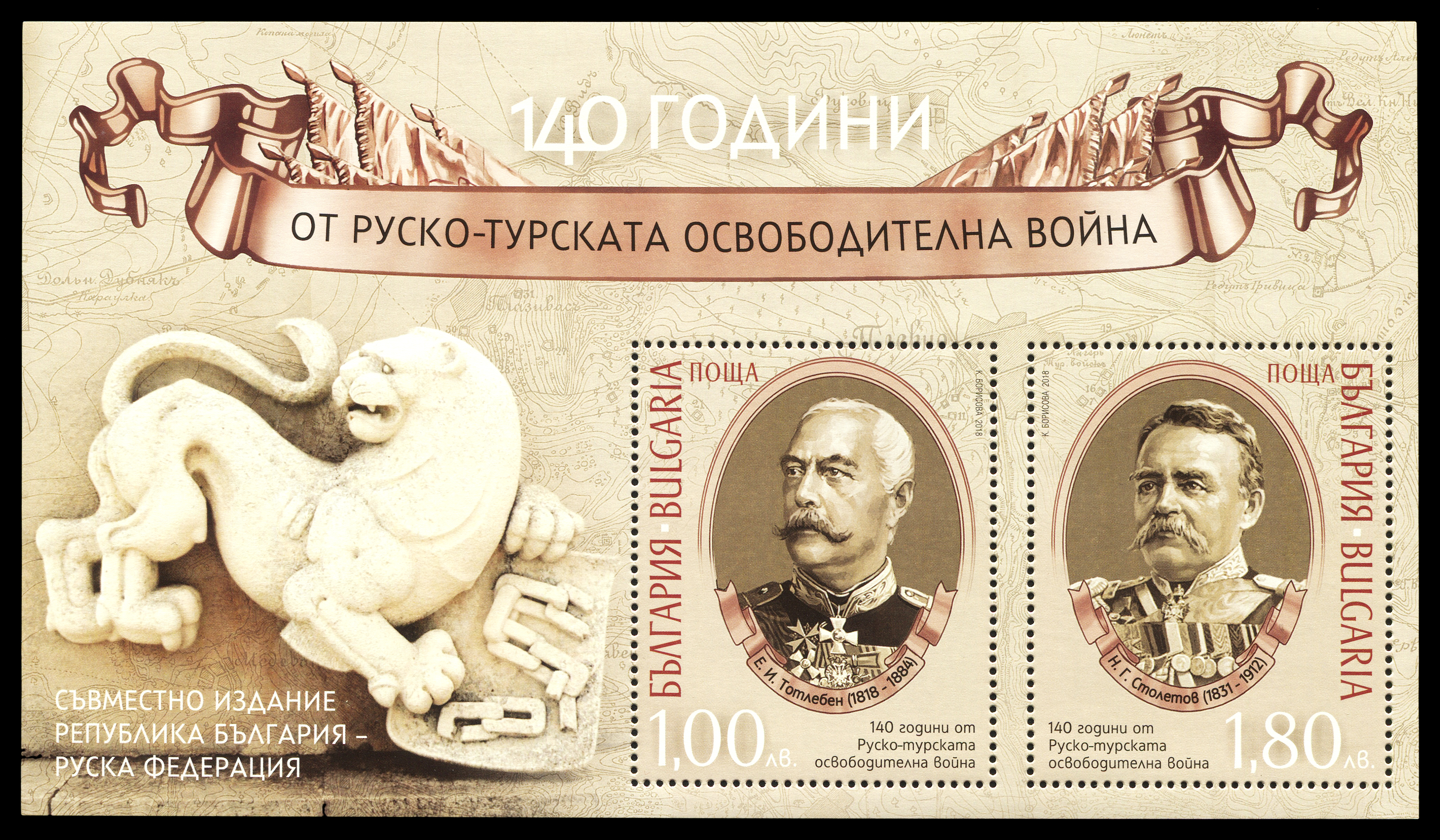 2018. Болгария-РФ. Совместный выпуск — 140-летие освобождения Болгарии от турецкой оккупации.