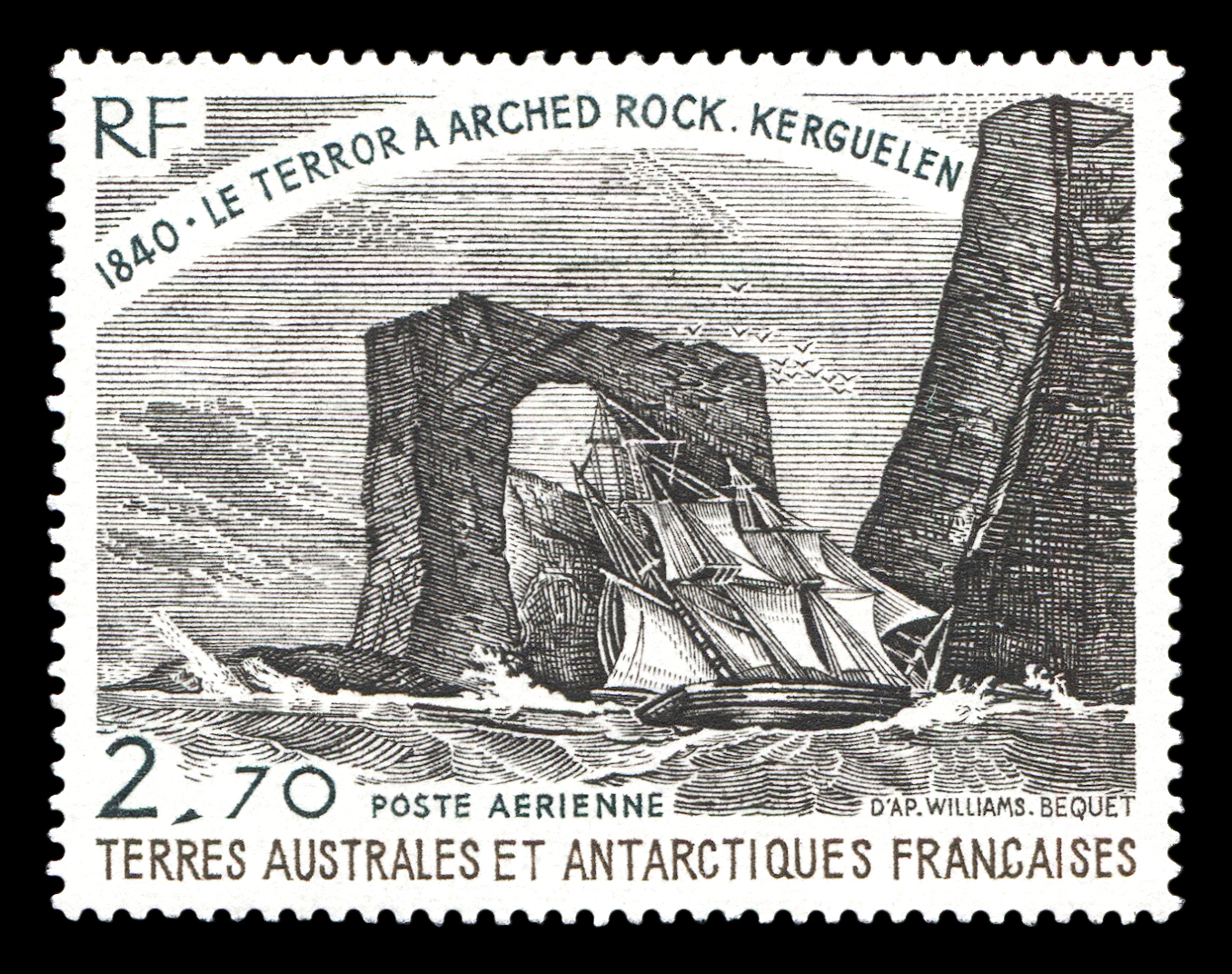 Корабль Его Величества «Террор» (бомбовый кеч) у Арчед-Рок, Кергелен (по мотивам работ Уильямса).