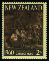 1960. Новая Зеландия. Рождество. Картина Рембрандта "Поклонение пастухов". 2P