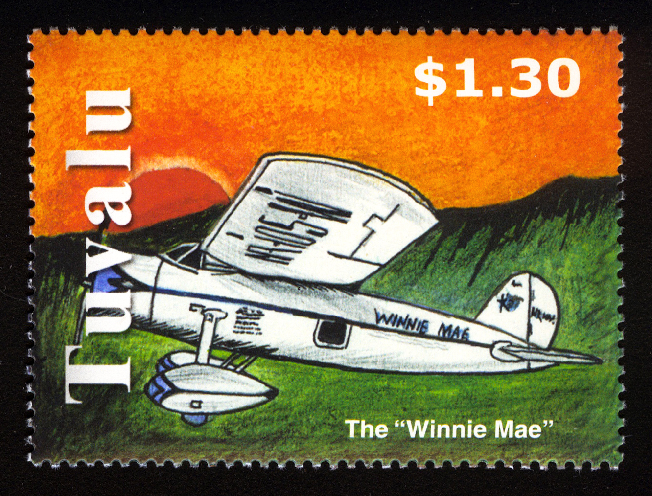 2008. Тувалу. 75-я годовщина первого одиночного кругосветного перелета.