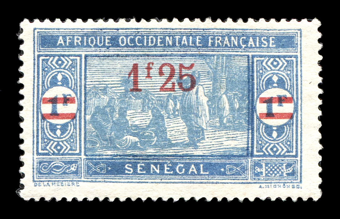 1922. Сенегал. Выпуск почтовых марок с надпечаткой нового номинала.