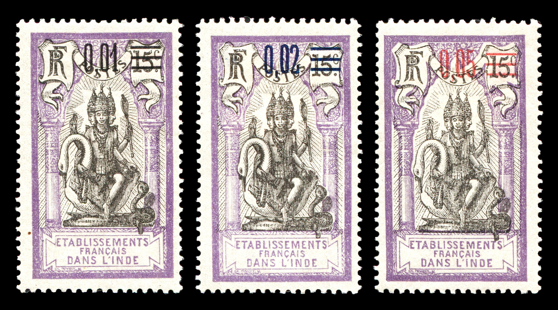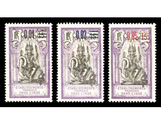 1922. Французская Индия. Шива с надпечаткой номинала.