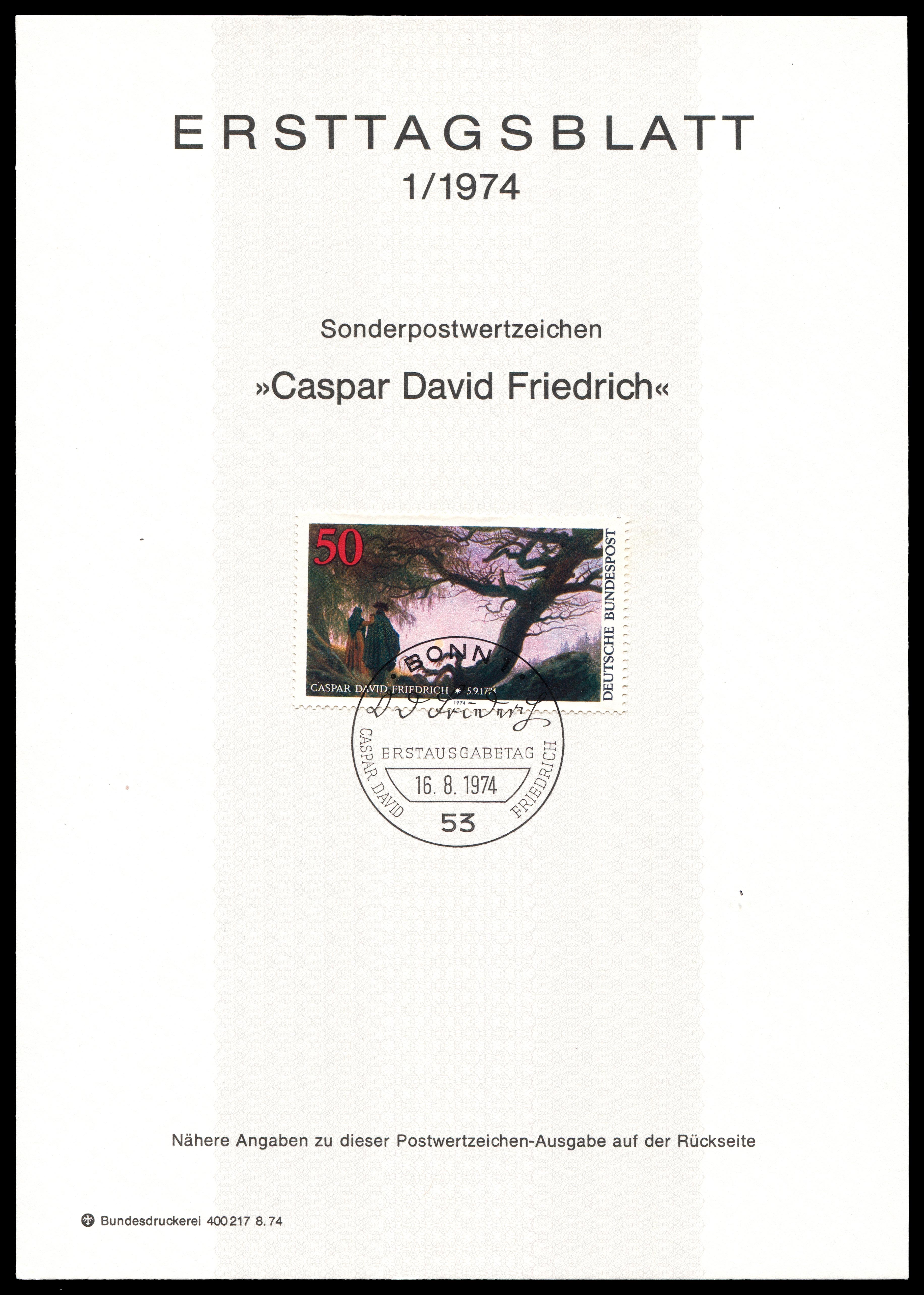 1974. Германия. 200-летие со дня смерти художника Каспара Давида Фридриха.