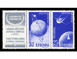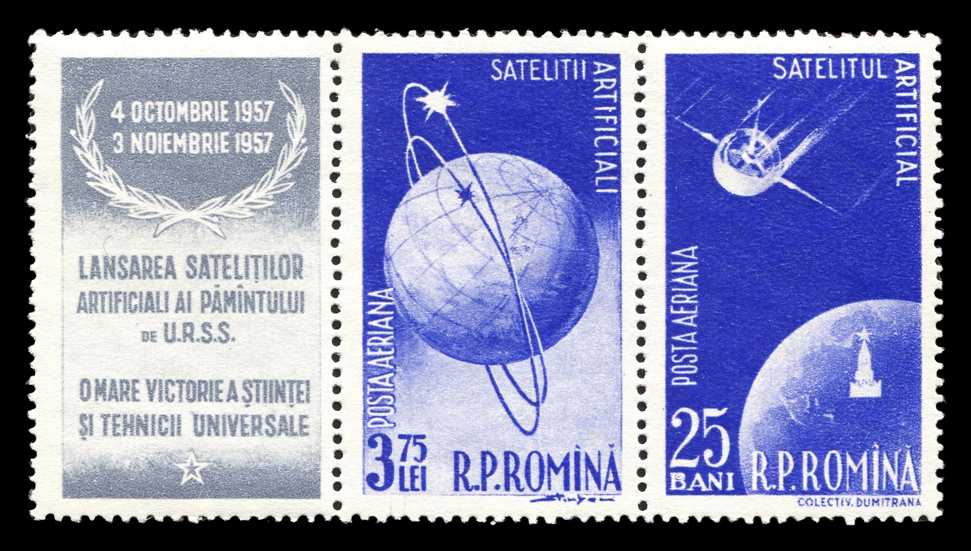 1957. Румыния. Воздушная почта. Первые советские спутники.