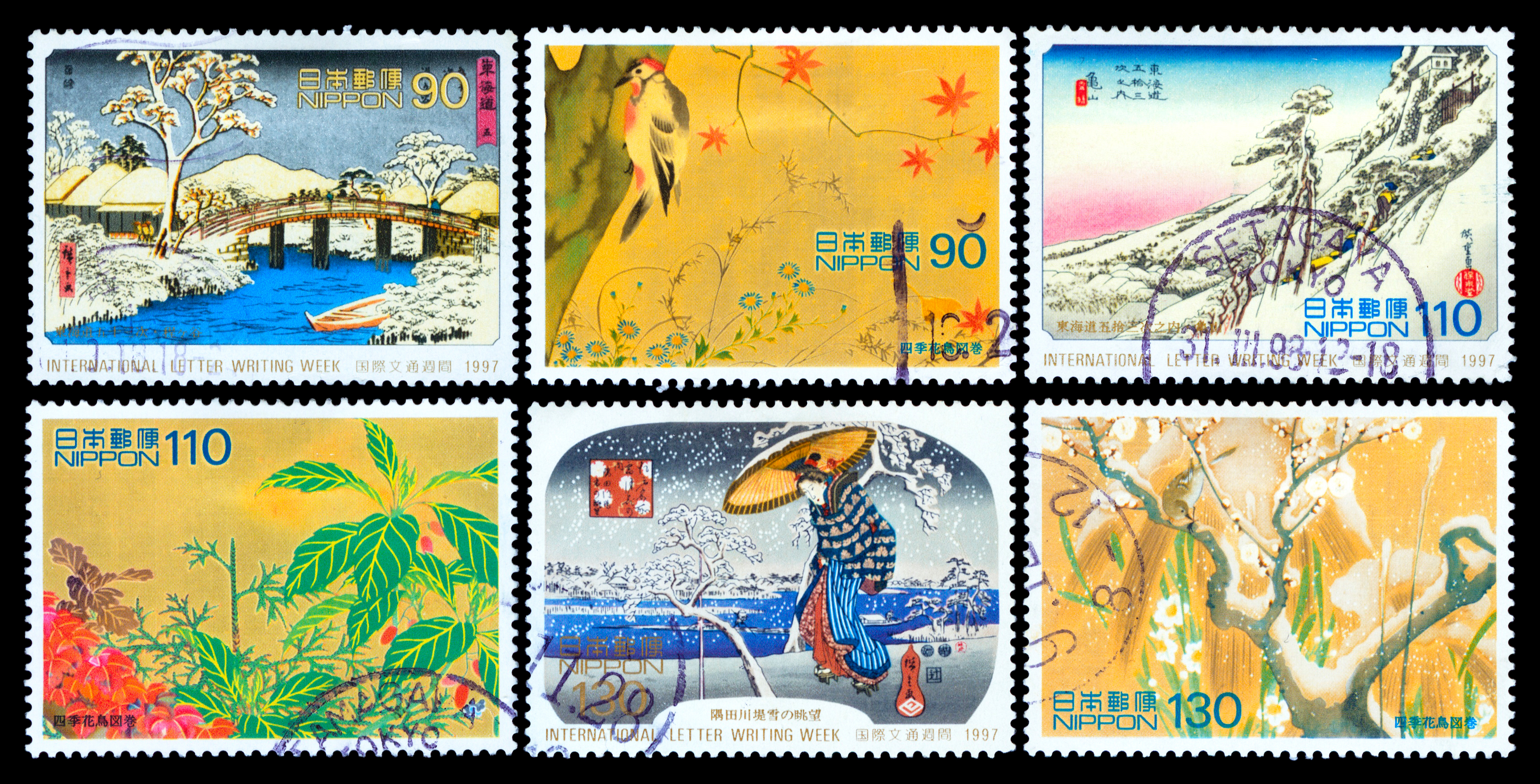 1997. Япония. Неделя письма. Картины Хиросигэ Андо и Сакаи Хоицу.