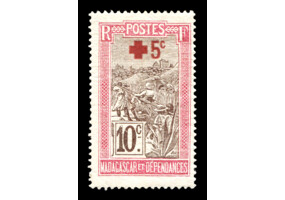 1915. Мадагаскар. Надпечатка Красного креста с новым номиналом.