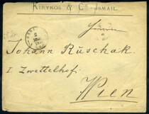 Отправление на бланке Австро-Венгерского консульства в Ростов-на-Дону 29.10.98 в Таганрог 02.11.98. Отметка почтмейстера об отсутствии адресата и возврат в Ростов-на-Дону.