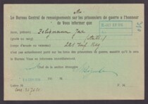 Первая мировая война. Стрелковый полк. Карточка военнопленного.