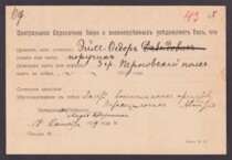 Почтовая карточка военнопленного. Просмотрена цензором и справочным бюро. Военноплен. Спасского гарнизона. Адресована американскому консулу во Владивостоке.