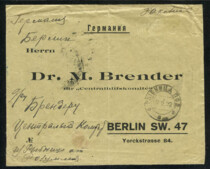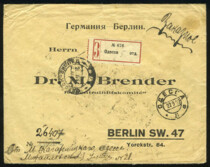 РСФСР. Заказное отправление из Полтавы в Берлин. 1-й ряд вторая слева марка РСФСР № 13 Kb - «БОБ».