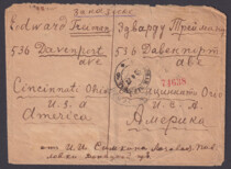РСФСР. Заказное письмо из Лозовая-Павловка (Луганская обл.) в Цинциннати, США через Нью-Йорк.