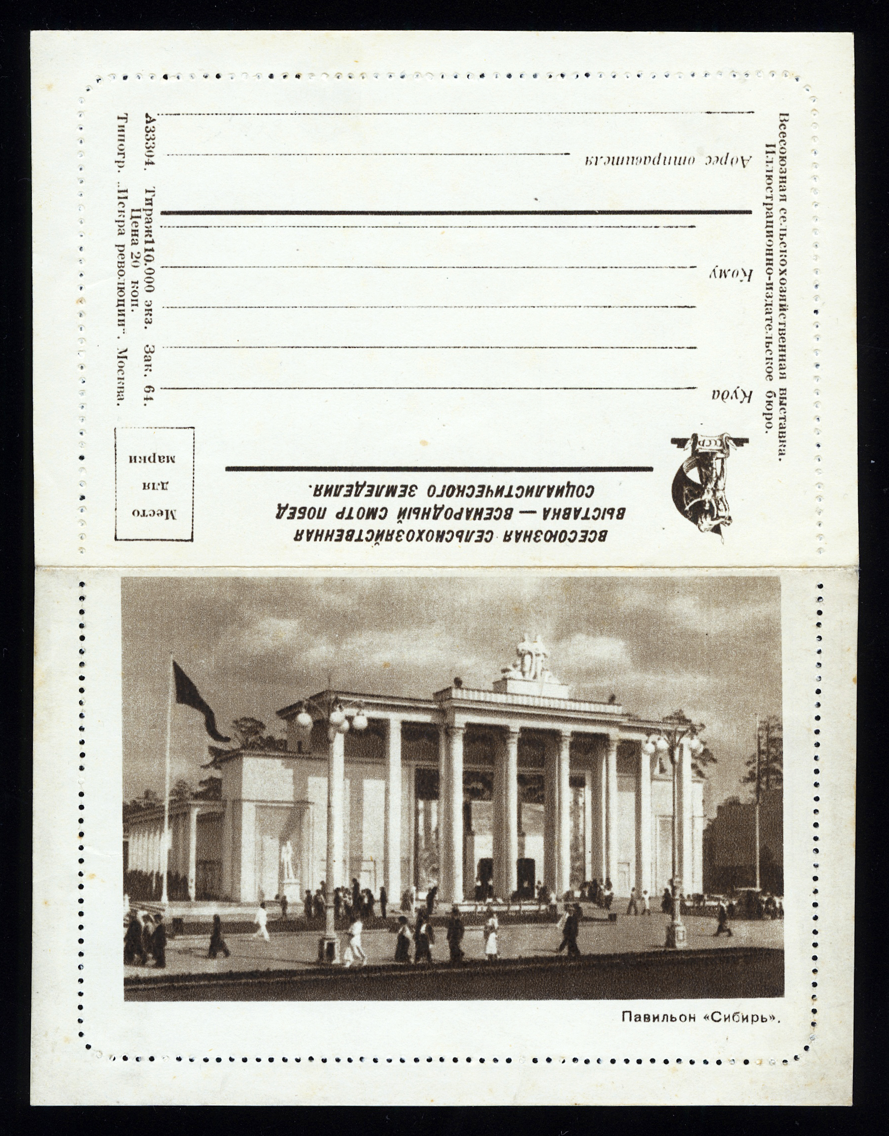 1939. СССР. Закрытое письмо. ВСХВ. Павильон "Сибирь".