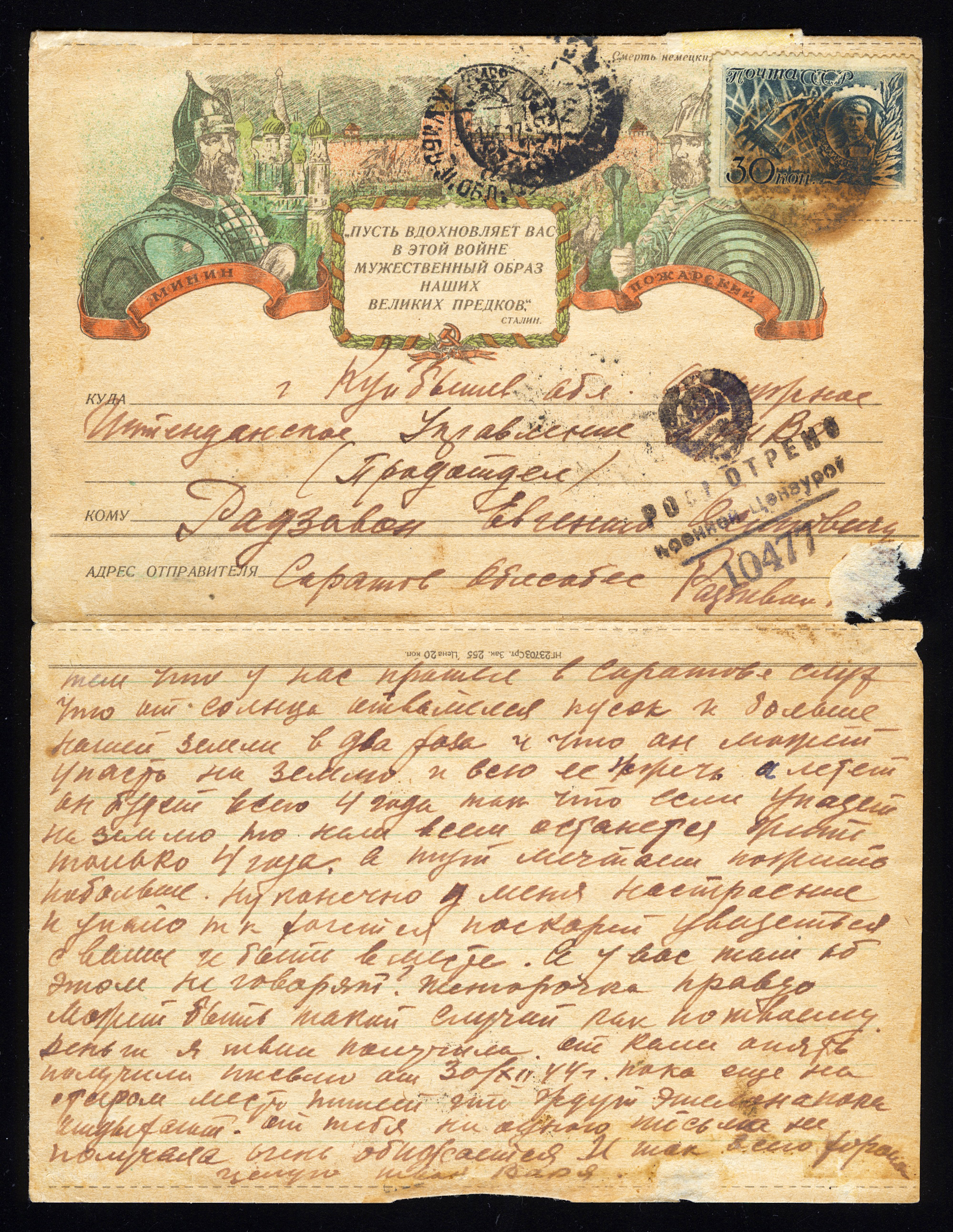 1941-1945. СССР. Закрытое письмо. Минин и Пожарский.