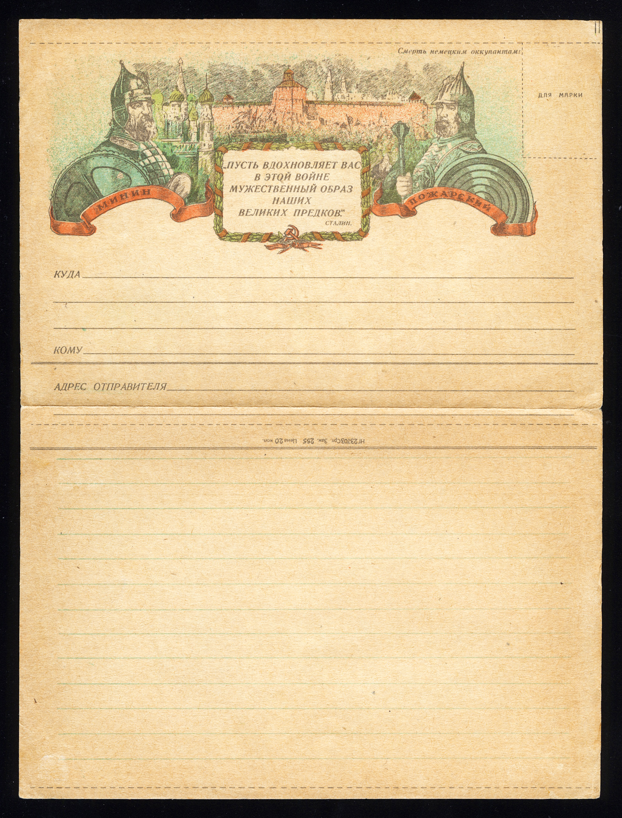 1941-1945. СССР. Закрытое письмо. Минин и Пожарский.