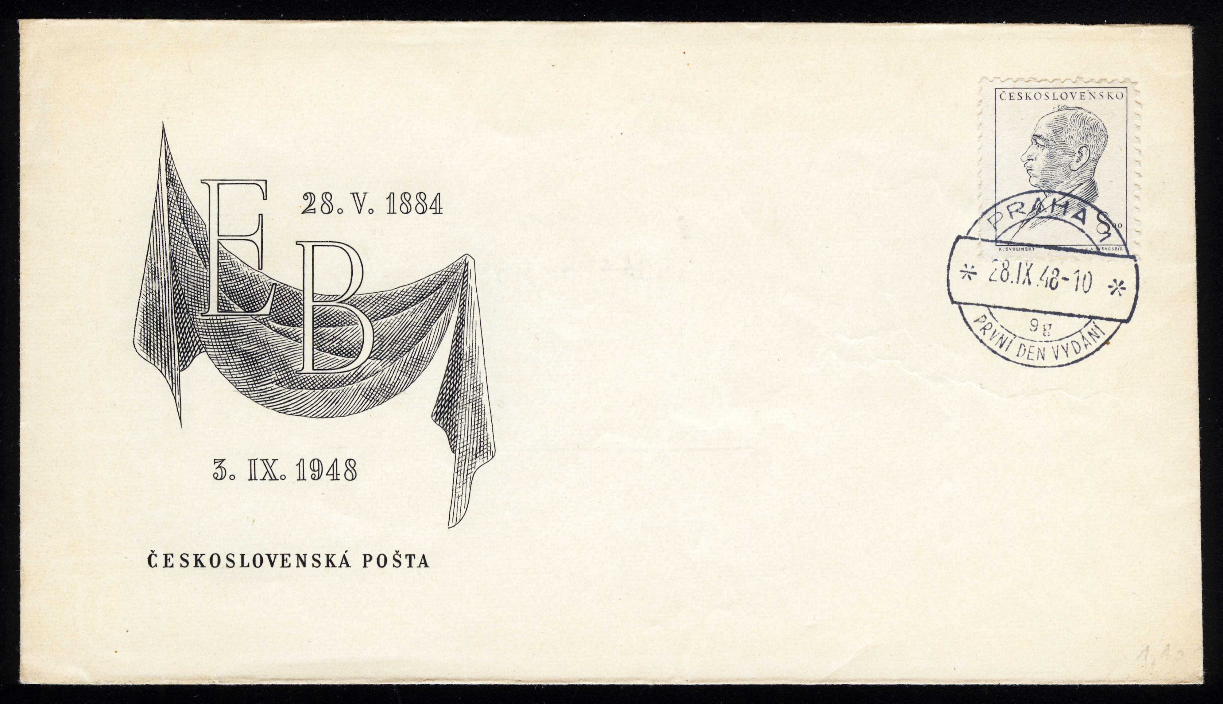 1948. Чехословакия. Конверт. Эдвард Бенеш.