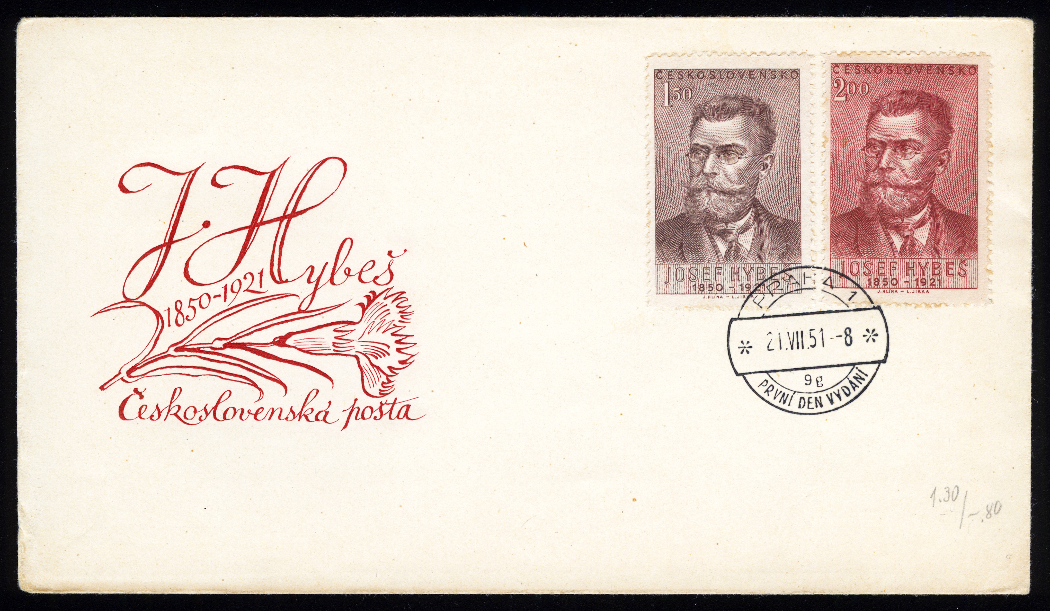 1951. Чехословакия. Конверт. Йозеф Гибеш.
