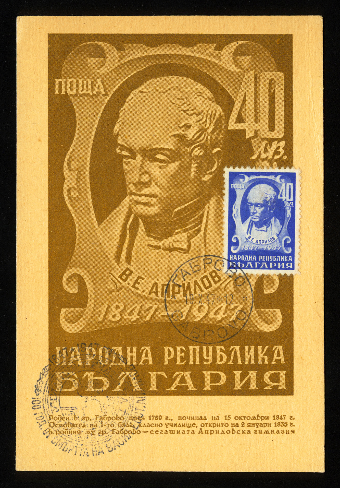 1947. Болгария. Картмаксимум. В.Е. Априлов.