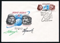 Автограф Леонида Кизима на конверте, приуроченному ко дню запуска пилотируемого космического корабля "Союз Т-3", 1981г.
