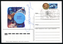 Автограф Алексея Леонова на почтовой открытке, приуроченной к 20-летию выхода человека в открытый космос.