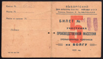 Билет на производственную массовку рабочих-ударников на Волгу.