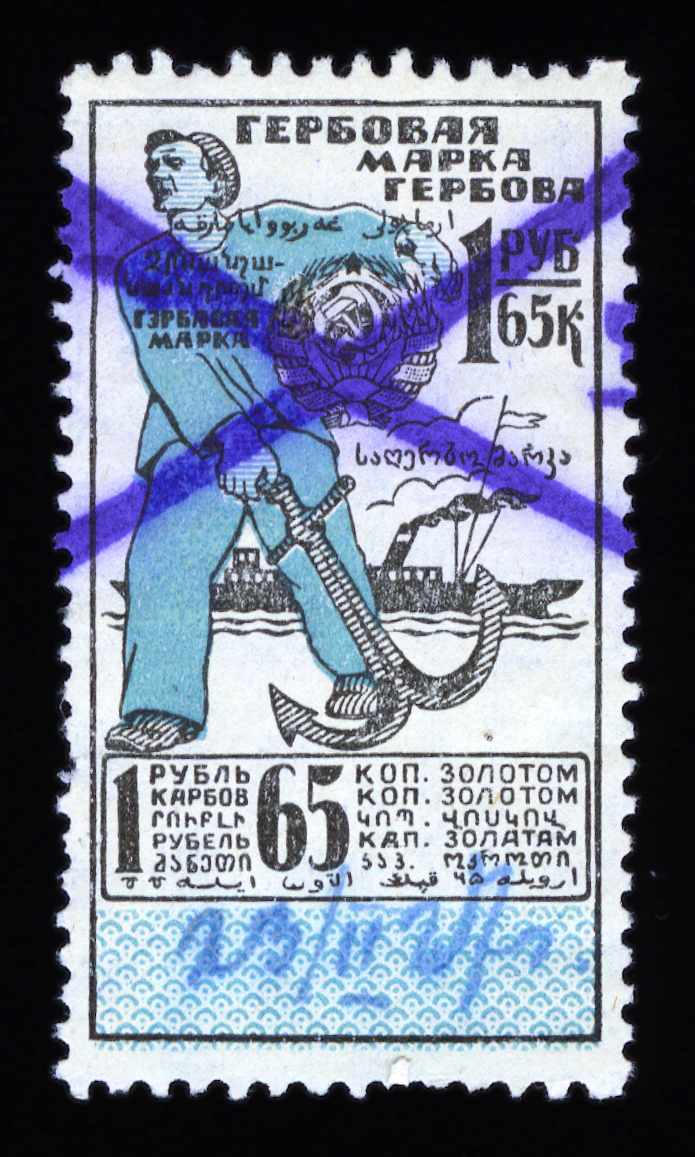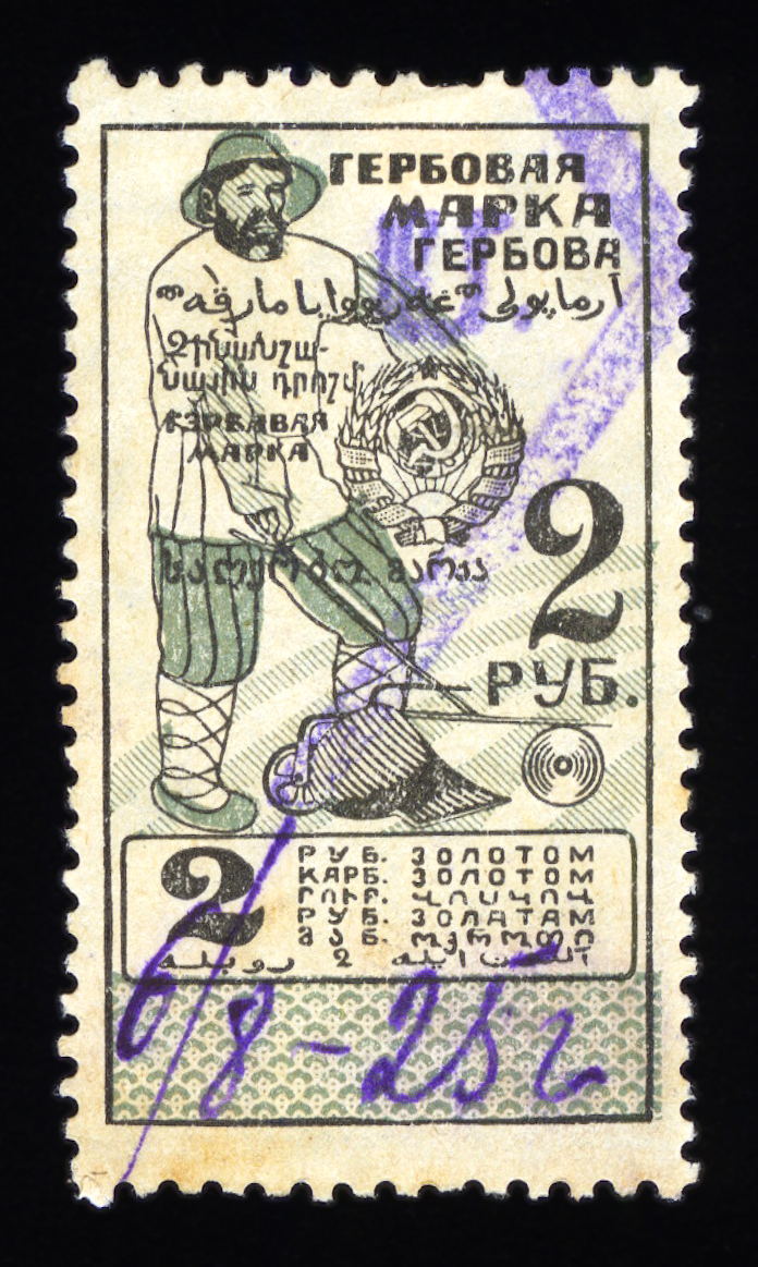 Кат. № 9 A (3.3.5.3.4.1). На гербовых марках. Надпечать: литографская. нового номинала в золотой (червонной) валюте на марках первого выпуска. Печать: литографская. Бумага белая. Узорчатый фон. Номиналы в "закзнаках" – рублях ЗСФСР. Перфорация 11 1/4. Размер рисунка 20,5 x 37,5 мм.