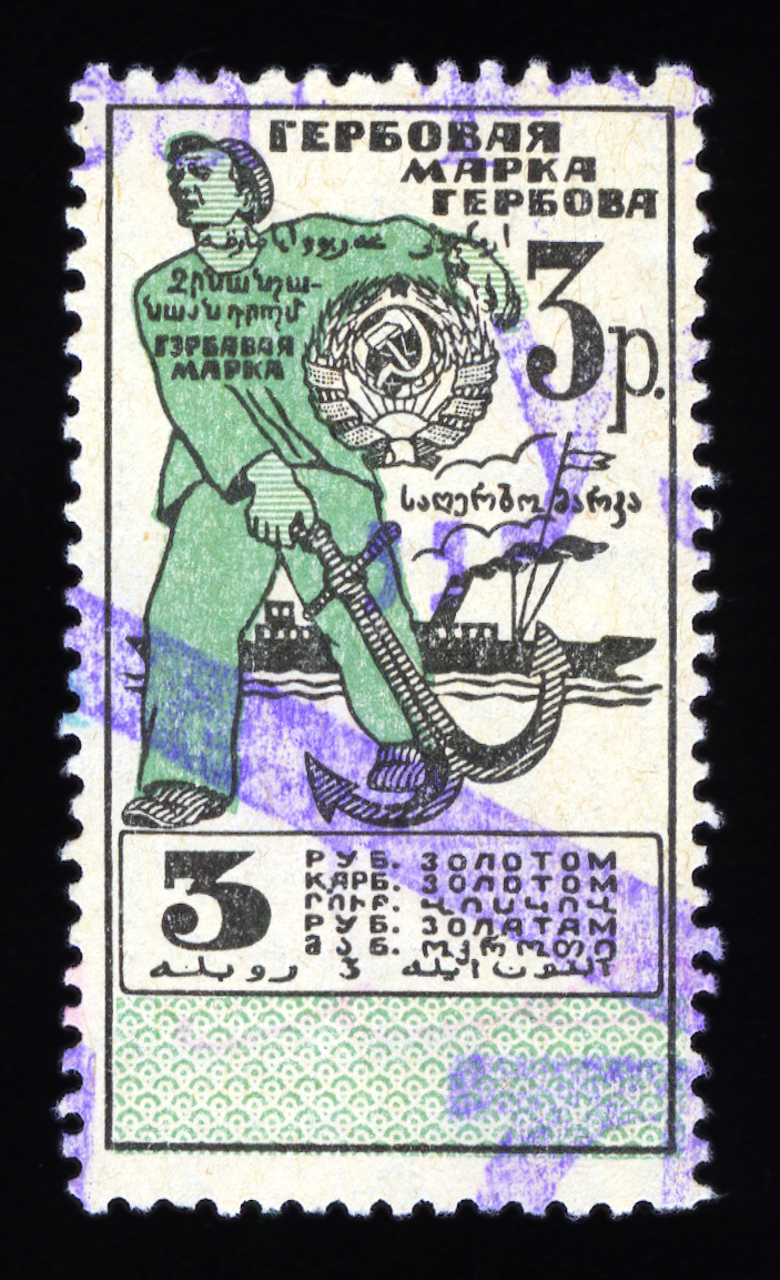Кат. № 9 A (3.3.5.3.4.1). На гербовых марках. Надпечать: литографская. нового номинала в золотой (червонной) валюте на марках первого выпуска. Печать: литографская. Бумага белая. Узорчатый фон. Номиналы в "закзнаках" – рублях ЗСФСР. Перфорация 11 1/4. Размер рисунка 20,5 x 37,5 мм.