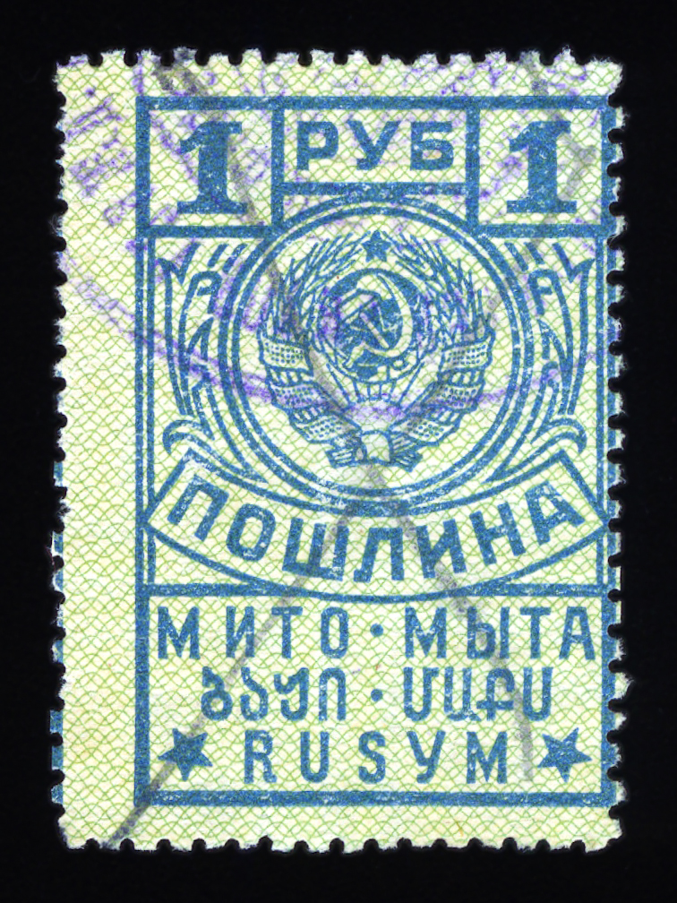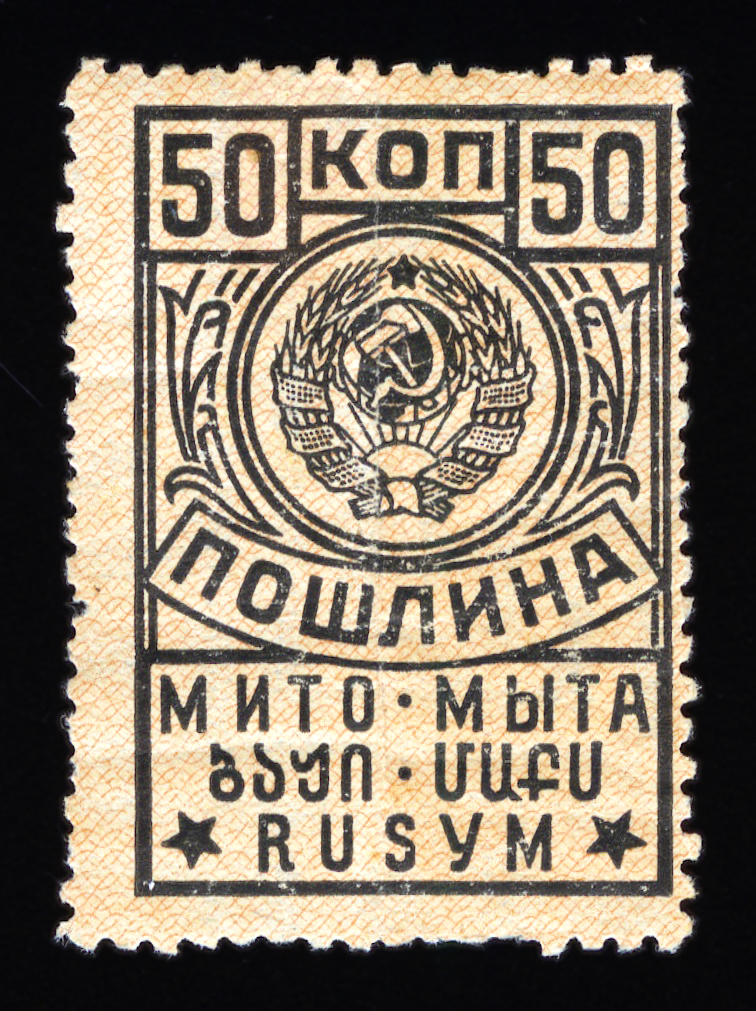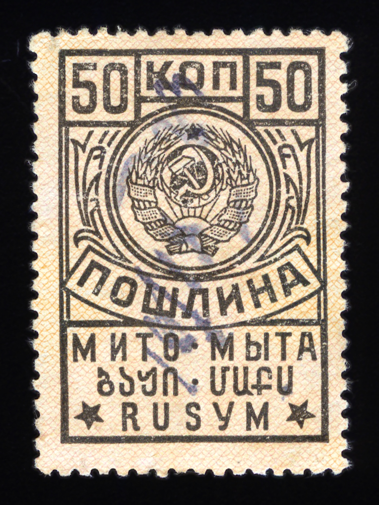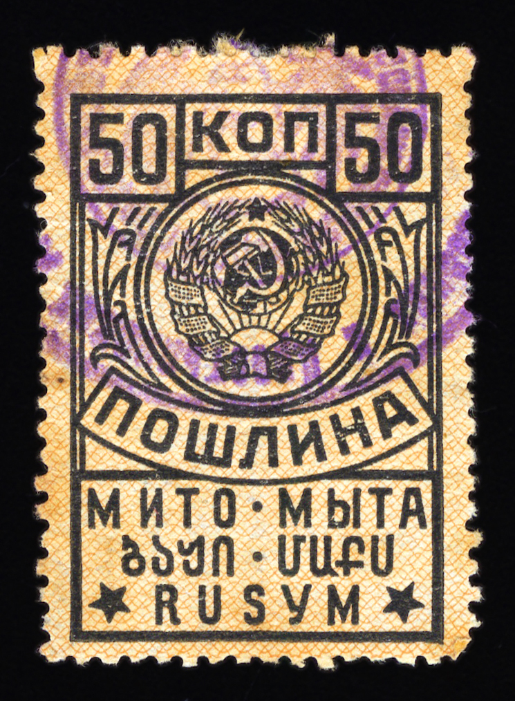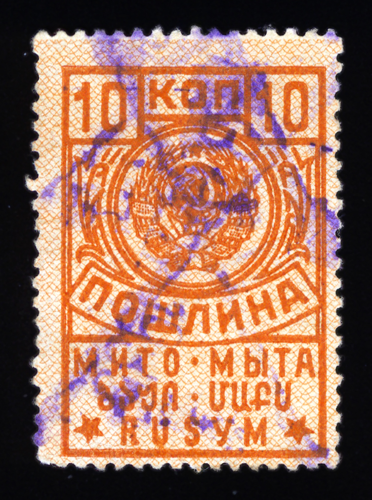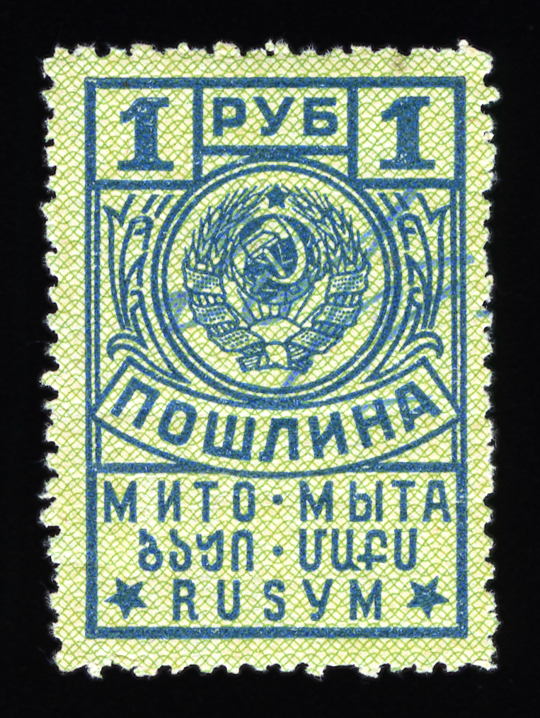 Кат. № 25 (4.12.1). С купоном. Печать: типографская. Бумага белая. Фон из горизонтальных волнистых линий. Перфорация 12 : 12 1/2. Размер рисунка талона с маркой 48,5 х 15 мм (23,5 x 15 мм каждая часть).