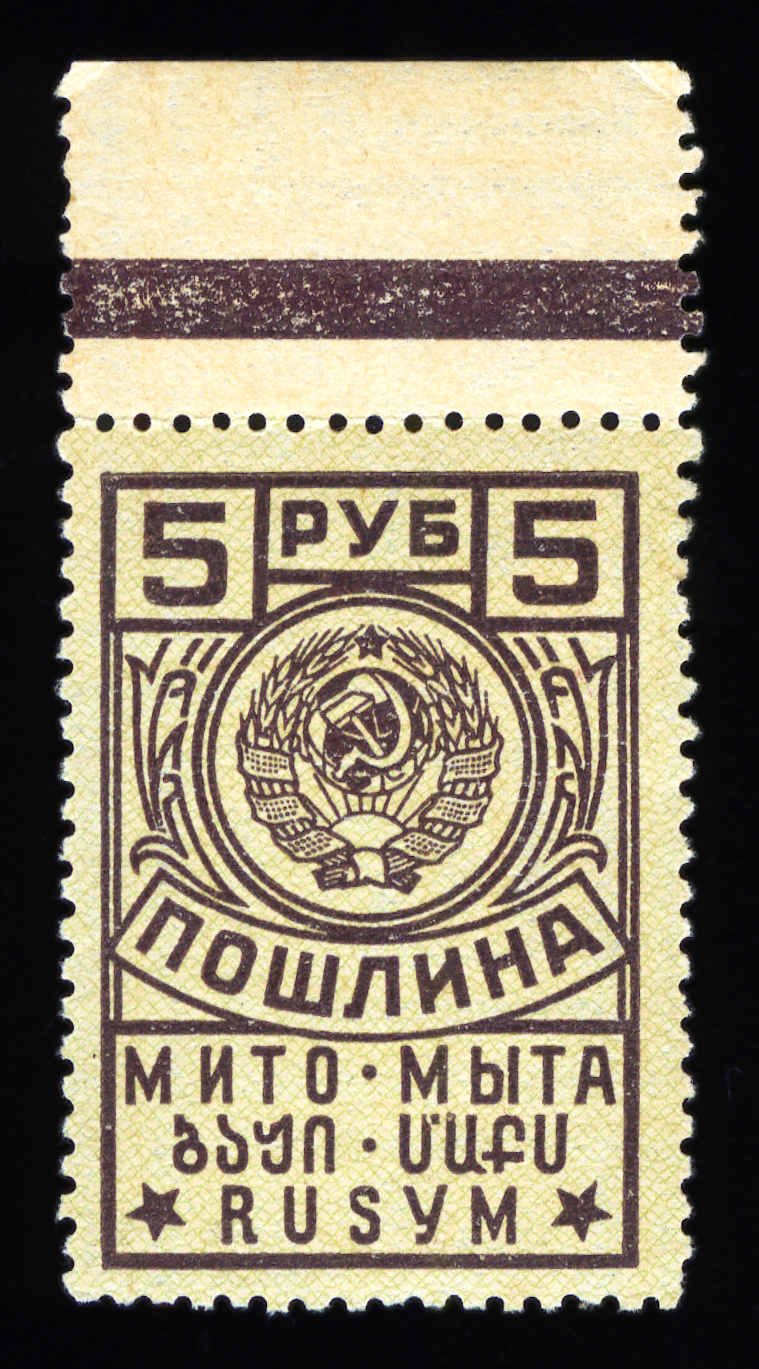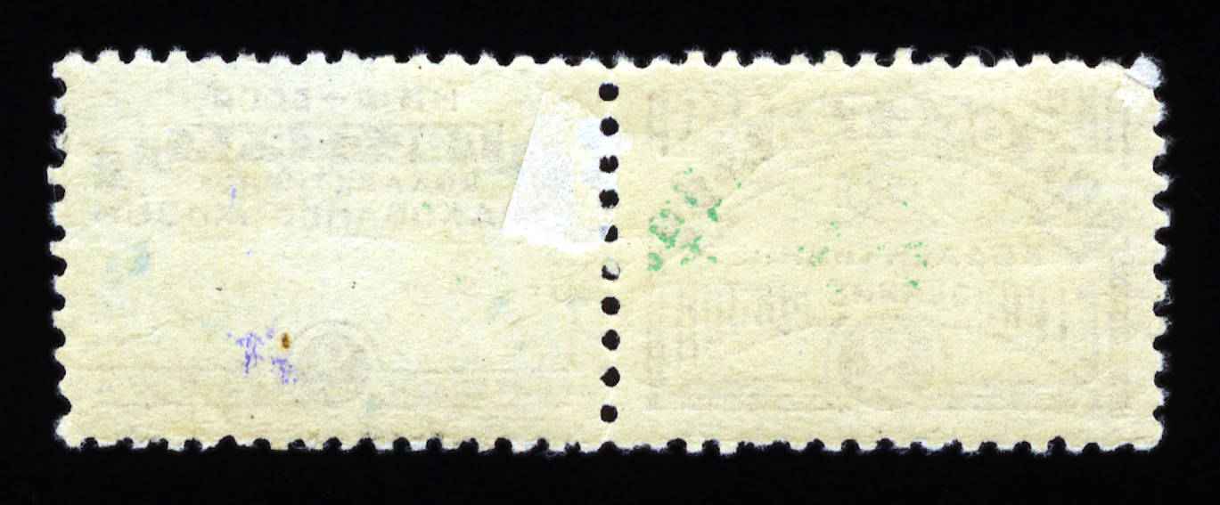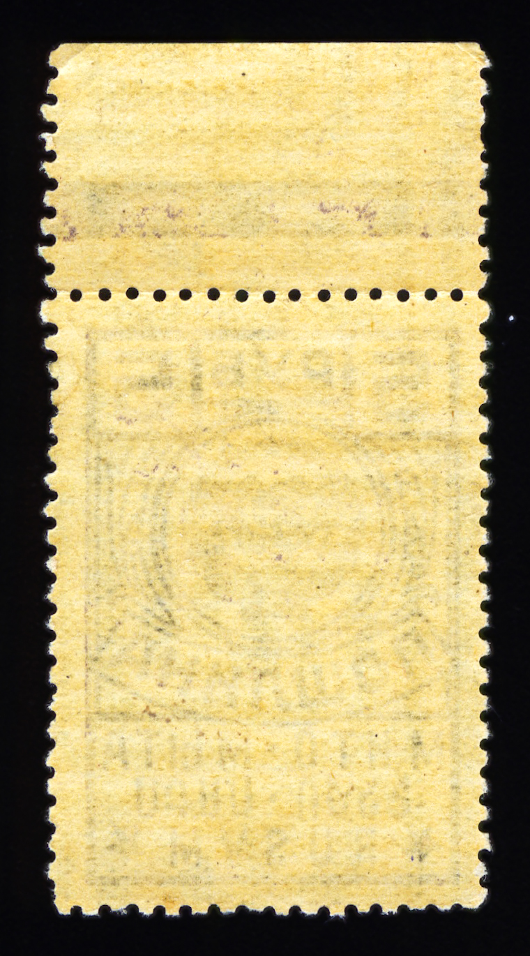 Кат. № 24 (4.12.1). С купоном. Печать: типографская. Бумага белая. Фон из горизонтальных волнистых линий. Перфорация 12 : 12 1/2. Размер рисунка талона с маркой 48,5 х 15 мм (23,5 x 15 мм каждая часть).