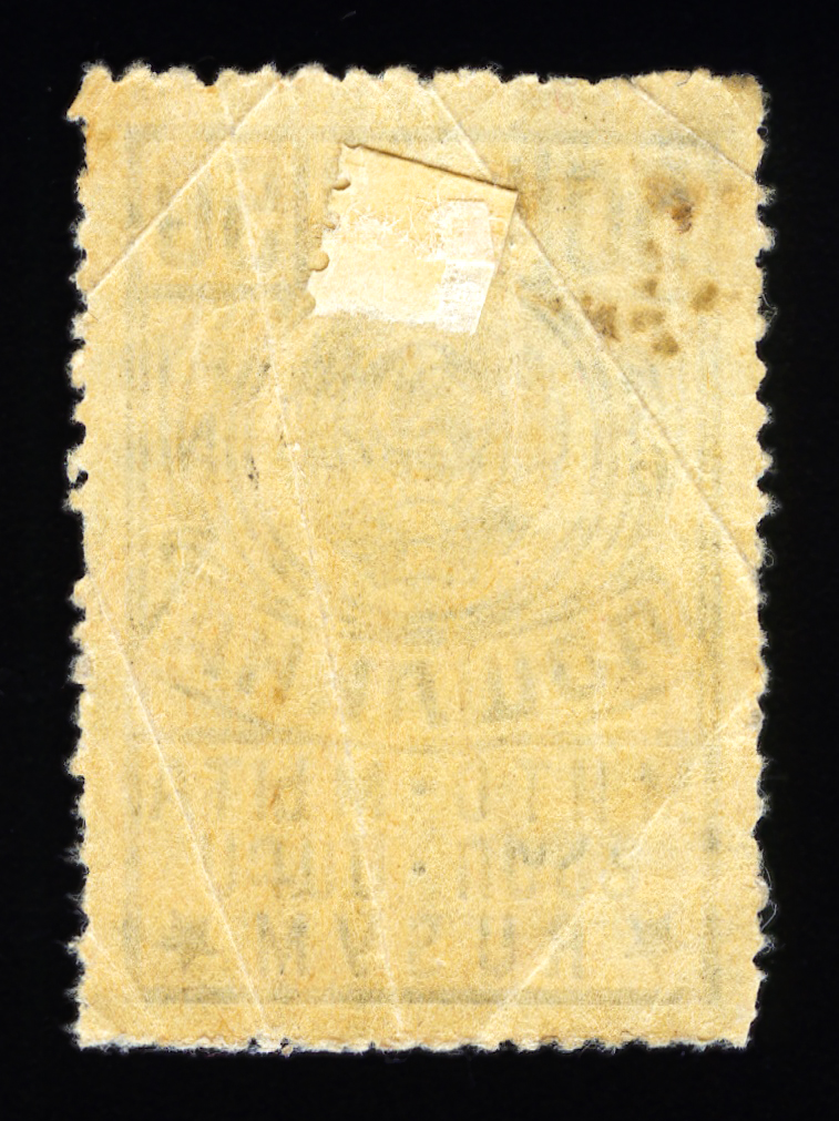 Второй выпуск адресного сбора. 2 раряд. Тип 1 — закрытая четверка. Печать: типографская. Бумага тонкая, Owm. Фон — гильошированная сетка и точки. Размер рисунка 23х46