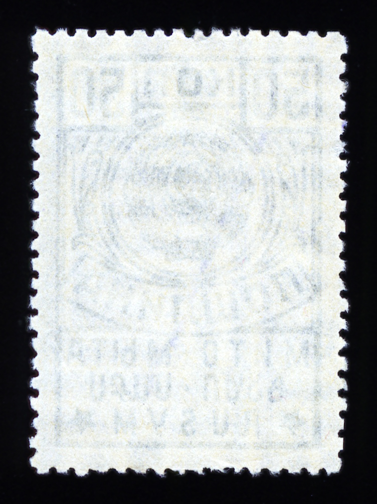 Кат. № 5 (4.3). Печать: типографская. Бумага белая. Wmk 11b. Фон – горизонтальные волнистые линии, заходящие друг на друга. Перфорация 12 1/2. Размер рисунка 22,5 х 33,25 мм.