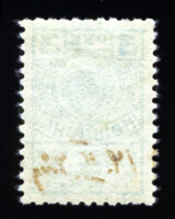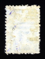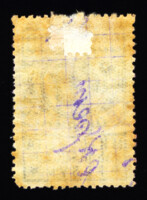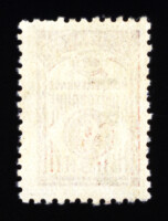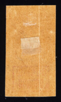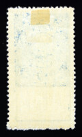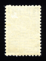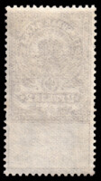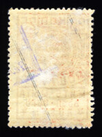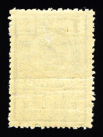 Кат. № 5 (3.3.5.1.1). Печать: литографская. Бумага рыхлая, сероватая. Желтый сетчатый фон. Без перфорации. С клеем и без клея. Размер 20,5 х 40 мм.