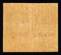 Кат. № 3 (3.3.5.1.1). Пара. Печать: литографская. Бумага рыхлая, сероватая. Желтый сетчатый фон. Без перфорации. С клеем и без клея. Размер 20,5 х 40 мм.