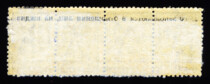 Кат. № 5 (3.3.5.1.1). Сцепка. Печать: литографская. Бумага рыхлая, сероватая. Желтый сетчатый фон. Без перфорации. С клеем и без клея. Размер 20,5 х 40 мм.