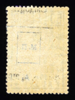 Кат. № 5 (3.3.5.1.1). Квартблок. Печать: литографская. Бумага рыхлая, сероватая. Желтый сетчатый фон. Без перфорации. С клеем и без клея. Размер 20,5 х 40 мм.